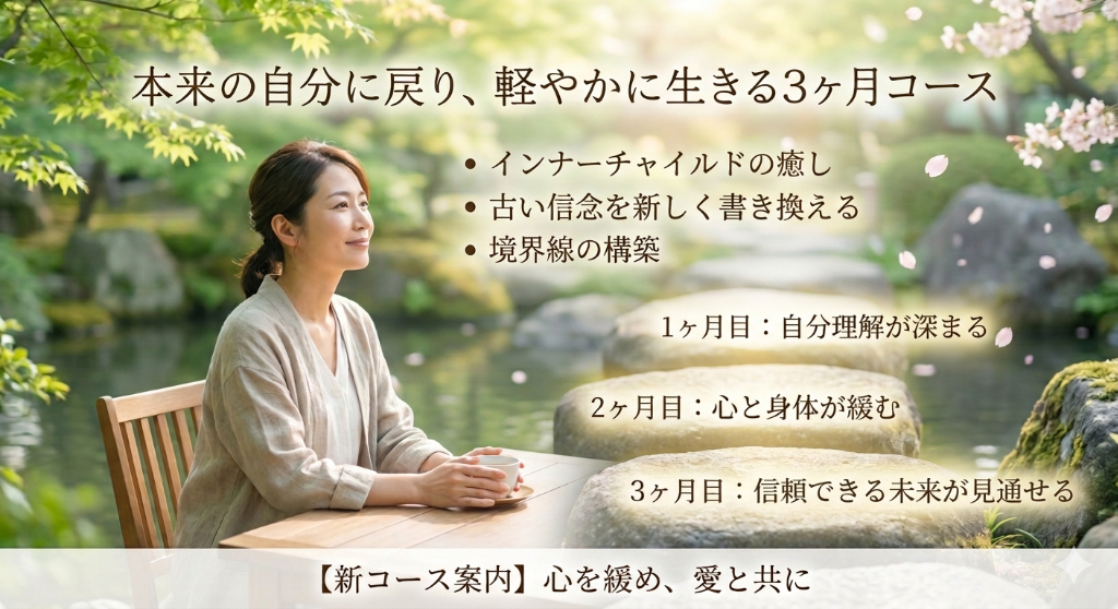 もう、誰かのための自分を卒業しませんか? 3ヶ月で『本当の私』を取り戻す旅へ。